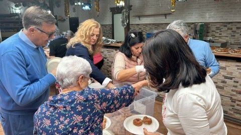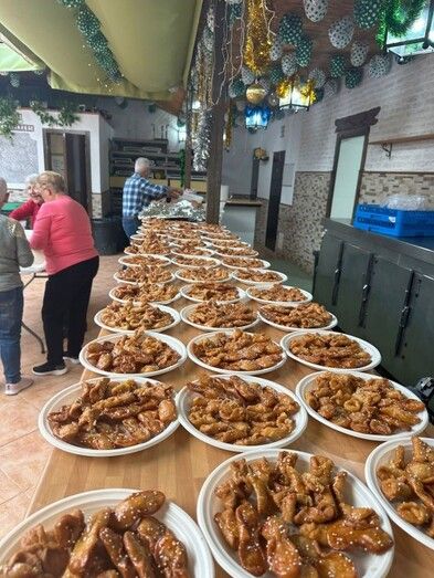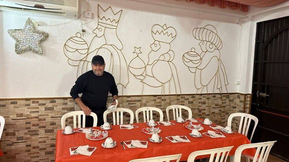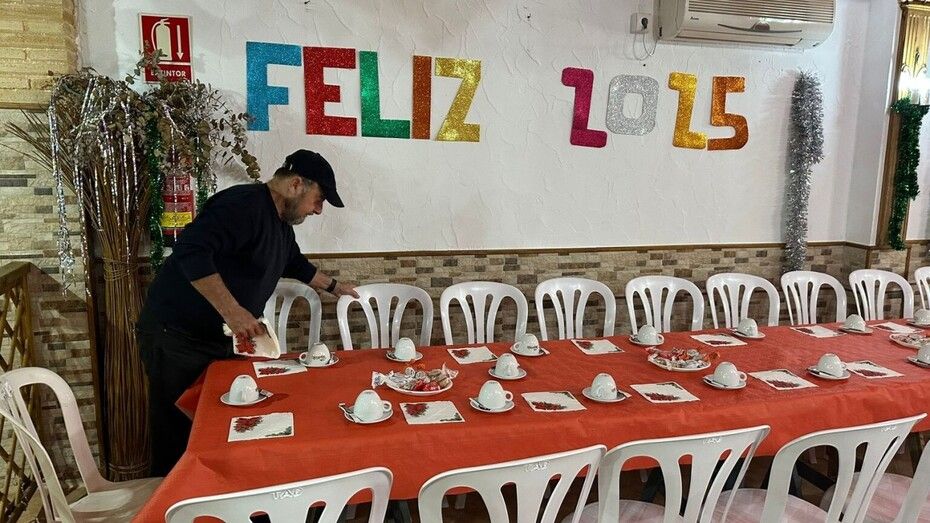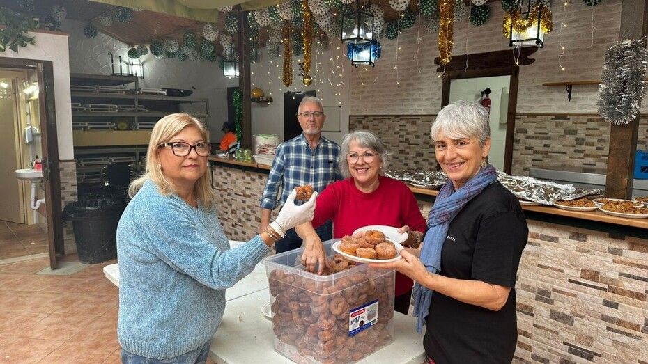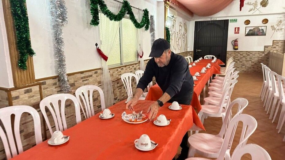 Colocar las mesas con sus manteles decorativos, algunos adornos navideños, distribuir los 16 kilos de pestiños elaborados por mayores, más los roscos y polvorones en platos para que llegue a todos los asistentes, además de colocar sillas y todo lo necesario para esta cita, ha sido parte de la atareada jornada de esta mañana.