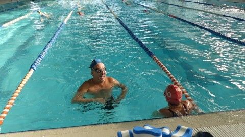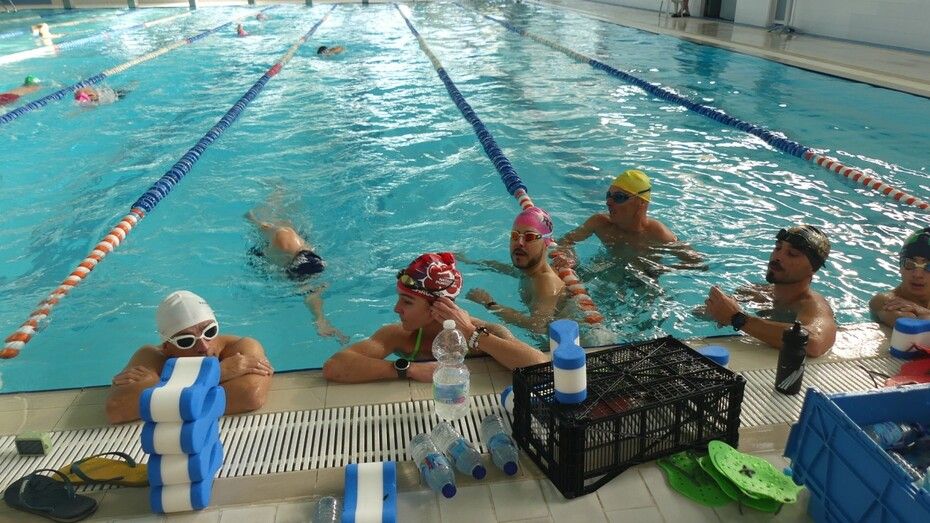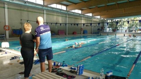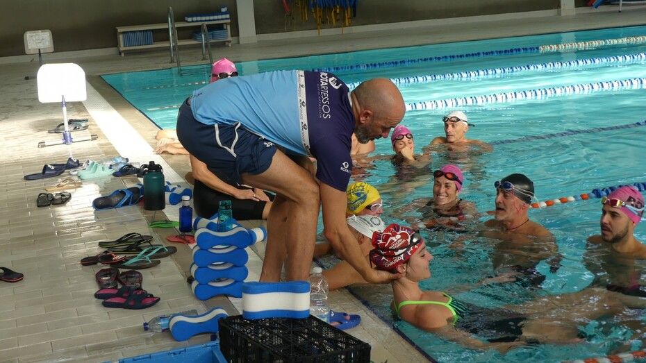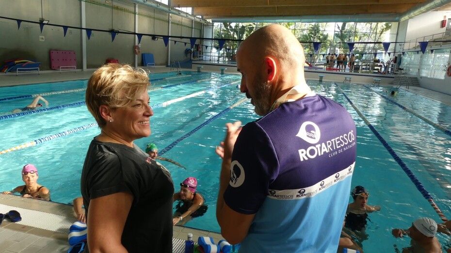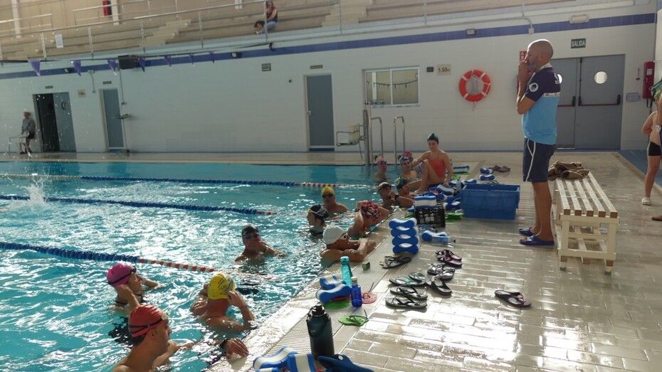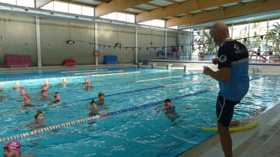 La piscina municipal, cedida por el Ayuntamiento de Rota, ha estado desde las 9 hasta pasadas las 11.30 horas, con una máster class impartida por Daniel Laynez, que ha ayudado a los nadadores a practicar estilos y perfeccionarlos.