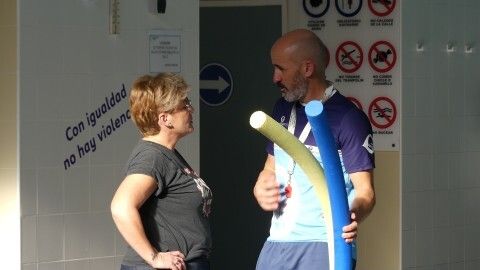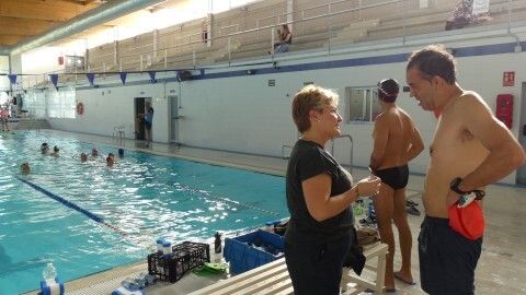 Con la intención de aumentar el número de kilos de alimentos que se entreguen finalmente, la delegación de Deportes y el Club Rotartessos han decidido dejar la mesa de recogida de comida en la piscina municipal durante toda la semana. De este modo, los usuarios de la piscina de mayor edad que no suelen acudir a este tipo de máster class de natación también tendrán la oportunidad de colaborar si quieren.