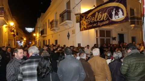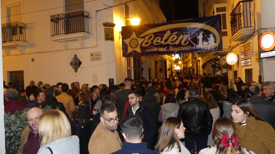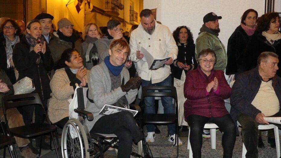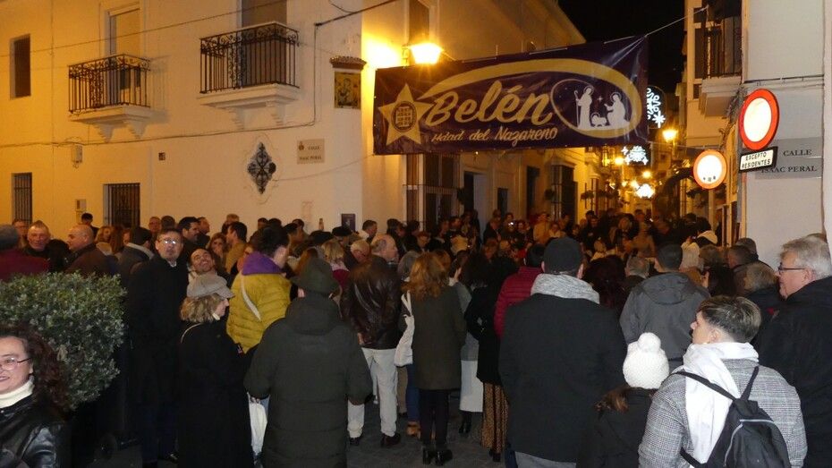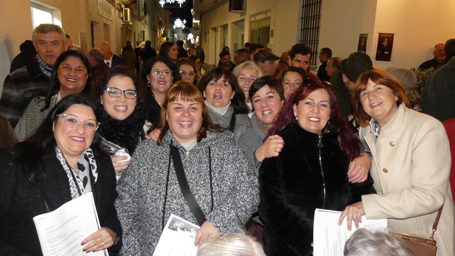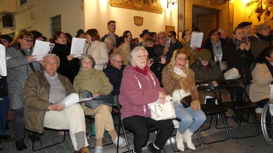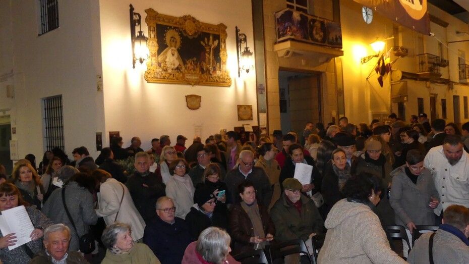 En la tarde del sábado, pasadas las ocho de la tarde, en la esquina de la calle Castelar con Isaac Peral, donde está situada la casa hermandad nazarena, se ha reunido un concurrido público para disfrutar un año más de este encuentro con el que se pretende mantener las raíces más profundas de las zambombas navideñas.