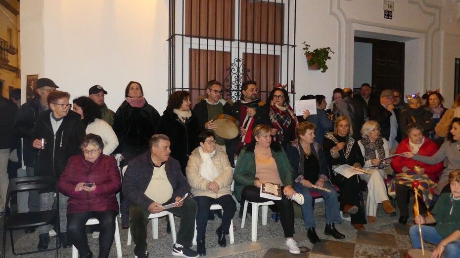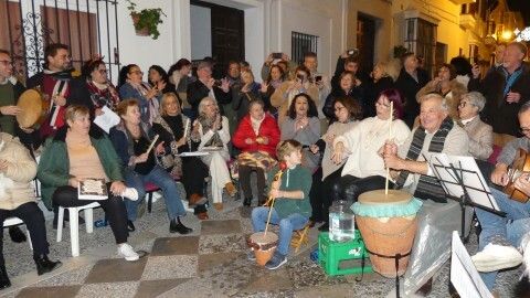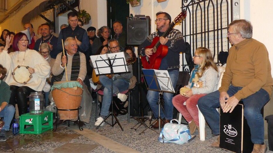 Un par de guitarras, dos zambombas, botella de anís y panderetas formaban el conjunto instrumental para acompañar a las canciones populares que, entre todos entonan, aunque siempre hay un grupo que lleva la voz cantante.