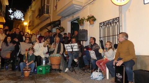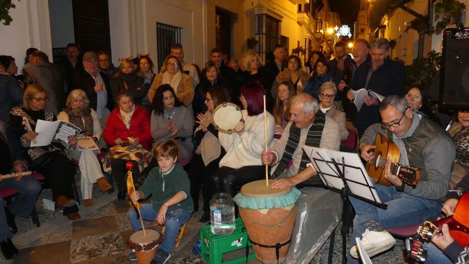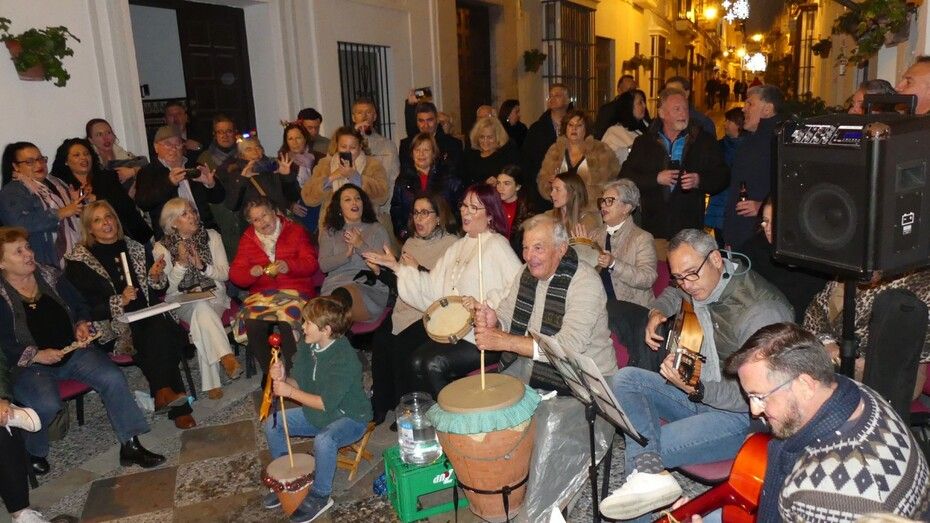 Con una pequeña candela en el centro para hacer más señero el momento, en círculo y animando a los presentes a salir a cantar como espontáneos, se ha celebrado esta zambomba navideña nazarena que arrancaba con la roteña Carolina Pacheco, para seguirla un grupo de roteños que ya son bastante conocidos en la localidad por arrancarse por villancicos y participar en más de una zambomba en Rota. Ha habido público, aunque quizás menos que otros años, ya que la agenda de actividades era este sábado apretada.