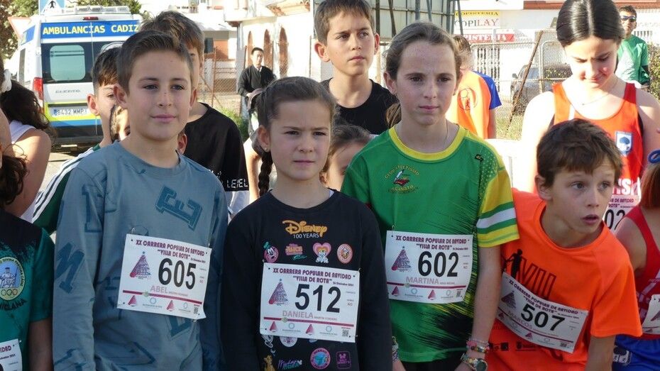 Antes de que salieran esos 212 corredores, entre los que estaban el alcalde de Rota, Javier Ruiz, y el delegado municipal José Antonio Medina, han sido protagonistas los más jóvenes, entre las categorías pitufos y Sub 18, que por grupos y con distancias adaptadas a su edad, han realizado desde los 100 metros en adelante. Como siempre, los más pequeños, a los que esta vez para evitar caídas se les ha puesto en salidas de seis en seis, han sido los que más han animado al público, seguidos de los adolescentes que también han dado muestras de su implicación.