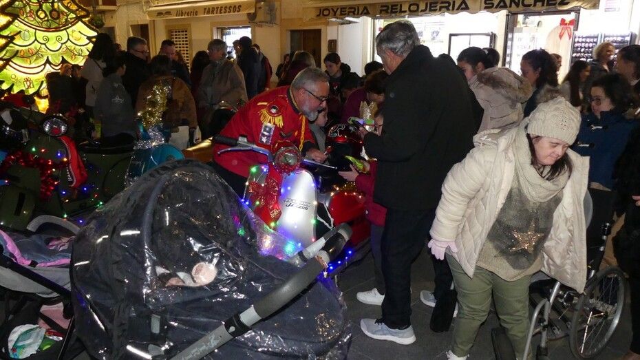 Han hecho parada como siempre, en la plaza de San Roque, donde se ven con los chicos de la Asociación de Personas con Discapacidad, que dejan su carta en un buzón portátil que llevan tras una moto. Con ellos se hacen fotos, les dan caramelos y echan unos minutos de convivencia. Este año además, lo han hecho con los niños de la asociación 'Takiwatanga', que también han tenido la oportunidad de dar su carta a estos 'vespajes', que son ayudantes del Cartero Real. Cuando este llegue a Rota el próximo 2 de enero, les harán entrega del buzón que contiene las misivas de los niños que se las han entregado en la jornada de hoy.