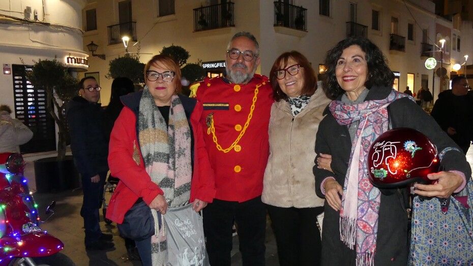 Cuando la pandemia del coronavirus trastocó aquella Navidad de 2020 con limitaciones que impedían una recogida normal de cartas a los Reyes Magos, cuatro 'vesperos' muy navideños del Vespa Club Rota, animados por un socio, se enfundaron una vestimenta propia de las fechas, y con sus motos, fueron recogiendo las cartas de los chicos de la Asociación de las Personas con Discapacidad para que sus deseos pudieran llegar a Melchor, Gaspar y Baltasar.