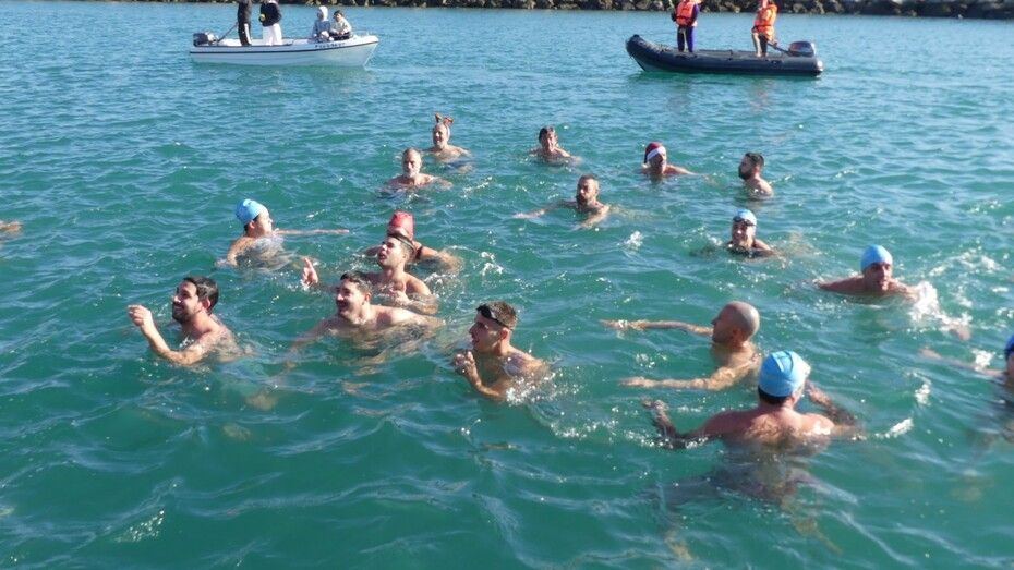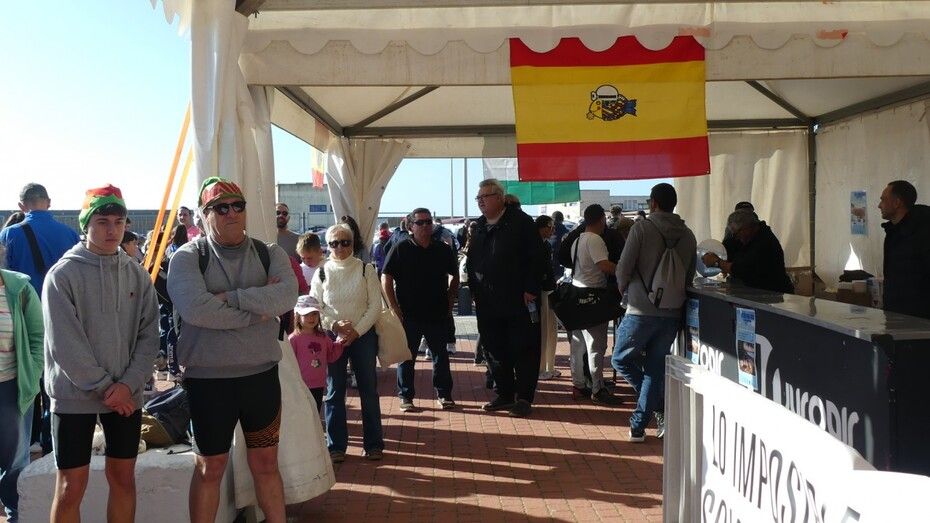 El último chapuzón colectivo del año se lo han dado muchos roteños y algunos ciudadanos que pasan estos días en Rota, con la celebración este domingo de la XVIII Travesía a Nado 'Pedro Machuca' que ha batido récord de participación con un total de 97 inscritos. Una cifra que casi duplica a la de otras ediciones y que deja buena muestra de que la iniciativa que hace 18 años impulsó Pedro Machuca tendrá continuidad en el futuro. Y es que esta prueba, que más que deportiva es de convivencia, anima cada año a muchos roteños, no especialmente aficionados a la natación pero que se arman de valor para lanzarse a mar en pleno invierno sin traje de neopreno.
