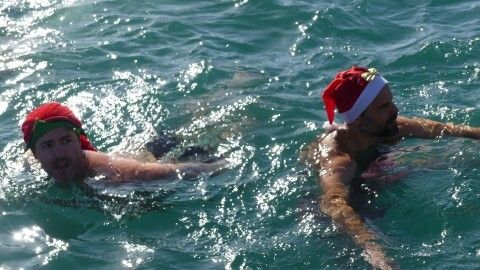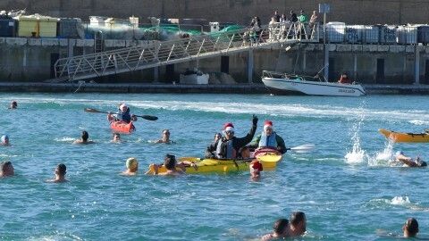 Como siempre, lo han hecho desde el muelle pesquero, con algunos gorros de Navidad que han dado un toque más navideño a una travesía que sirve para despedir el año deportivo. El primero en hacerlo era, como siempre, Pedro Machuca, que es también el último en salirse del agua. Para controlar que todos los participantes estén atendidos ante un tirón o cualquier otra eventualidad, personal de Protección Civil y de la asociación de Kayaks así como del Club Náutico URTA han velado por el buen desarrollo de esta prueba.