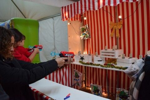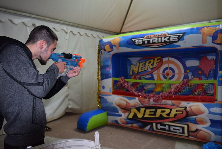 Otra de las carpas albergaba tres puestos de tiritos con pistolas de juguete, que se convirtieron rápidamente en un éxito entre grandes y pequeños. En uno de ellos, los participantes compitieron por ganar cotillones como premio; en otro, se ofrecían bolsas de regalo; y el tercero estaba dedicado exclusivamente al entretenimiento, atrayendo a quienes buscaban simplemente pasar un buen rato.