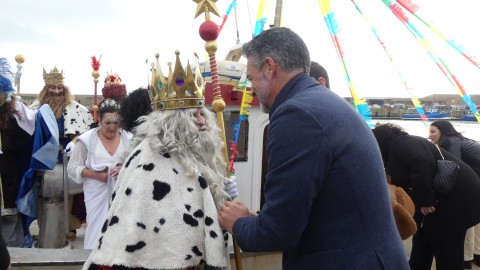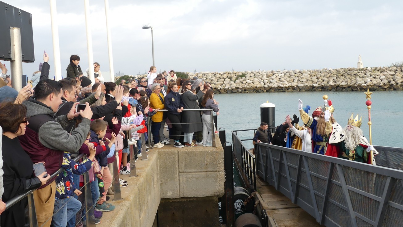 Como siempre, una embarcación pesquera de la localidad les ha llevado hasta el pantalán donde muchos ciudadanos esperaban impacientes porque da igual el día que sea, la llegada de Sus Majestades se celebra siempre por todo lo alto.