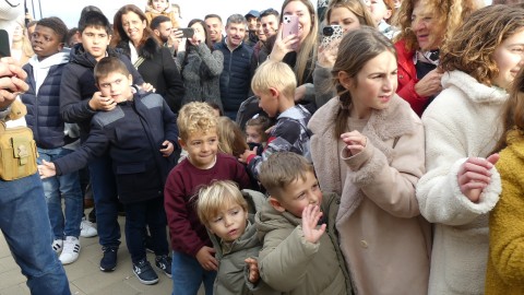 A pie de puerto, esperaban el alcalde de Rota, Javier Ruiz, y algunos concejales para saludarlos de forma oficial y minutos más tarde, los niños han sido los protagonistas.