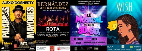 Tras la celebración de la Navidad que terminó ayer con el festivo del día de Reyes, la agenda cultural no para en Rota y en este mes de enero hay varias citas destacadas con las que poder disfrutar del tiempo de ocio en el auditorio municipal 'Alcalde Felipe Benítez'. Espectáculos que combinan música, nostalgia y humor se darán cita en una programación que tiene su primera parada este viernes y que continuará todo el mes con tributo musical, noche de jazz y show lleno de ingenio.