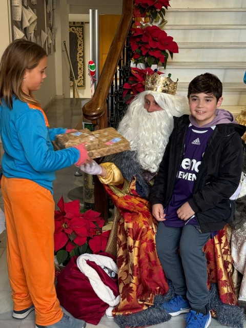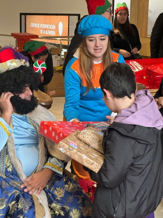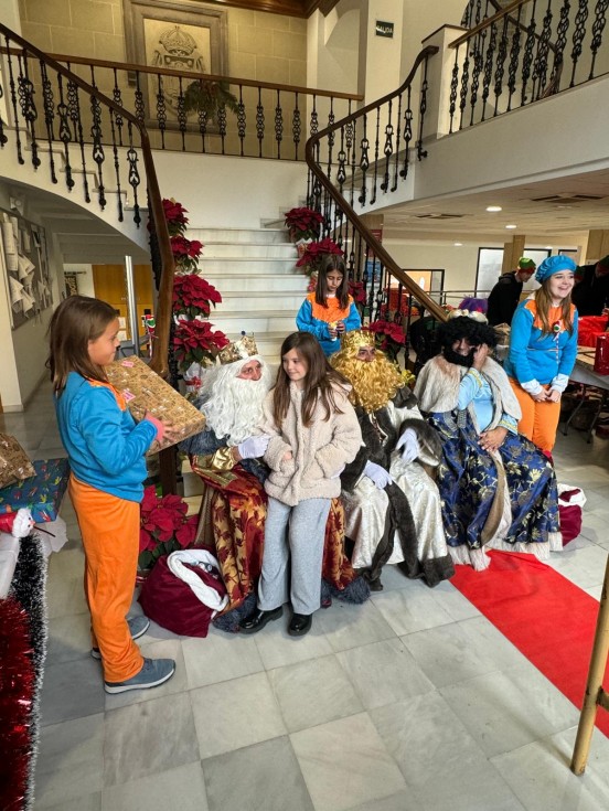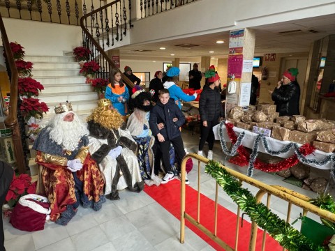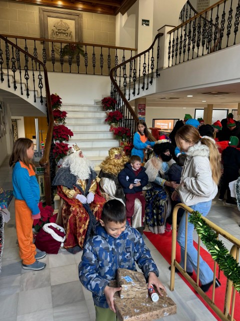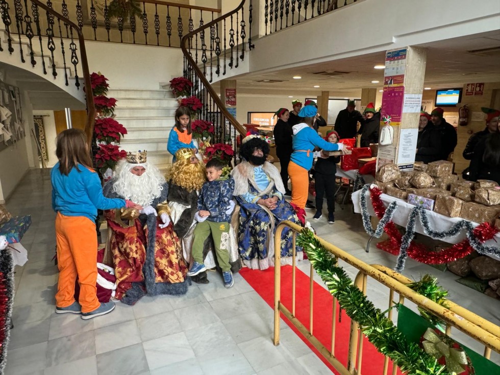 En fila, los niños esperaron su turno para ser llamados y de manos de Melchor, Gaspar, Baltasar y sus pajes, salieron de la Casa Consistorial con un paquete entre las manos y cara de alegría.