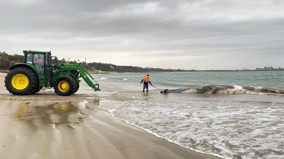 Según ha sabido este medio, ayer ya una embarcación dio aviso de que en la zona, pero a unas dos millas al suroeste de Rota, estaba esta ballena muerta en alto grado de descomposición, con muchas gaviotas en superficie picoteando. Enseguida, Miguel Ángel Romero, patrón de la embarcación (y autor del vídeo de la ballena en el mar) se puso en contacto con Salvamento Marítimo indicando las coordenadas y facilitando características del estado del mamífero.