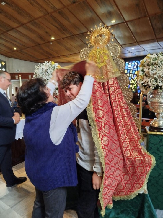 Esta mañana, en la parroquia de Nuestra Señora del Carmen, se ha celebrado la Misa de la Candelaria, en la que se ha presentado y bendecido a los niños de la Hermandad de Nuestra Señora del Rocío ante la imagen de la virgen. Una cita que también ha servido para presentar a la persona que será la encargada de pregonar el Rocío de Rota 2025, y que este año, la junta de gobierno ha decidido que sea el joven Manuel García Sánchez.