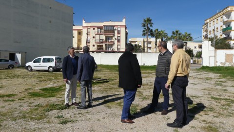 Esta mañana, miembros de la empresa promotora, HZ Inversiones Carrero Manrique, de la constructora Gestaco Construcciones, y del gobierno local, encabezado por el alcalde de Rota, Javier Ruiz, y el teniente de alcalde Daniel Manrique, así como algunos técnicos, han estado en la gran parcela para ver in situ el replanteamiento de este proyecto del que todos se han alegrado.