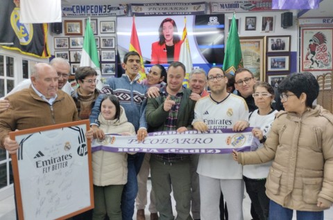 Por fin, la camiseta firmada por los futbolistas de primerísimo nivel, está en Rota y en manos de la Asociación de las Personas con Discapacidad, que dieron las gracias a toda la junta directiva madriista por este detalle, y compartieron un rato de convivencia rodeados de la alegría de los chicos.