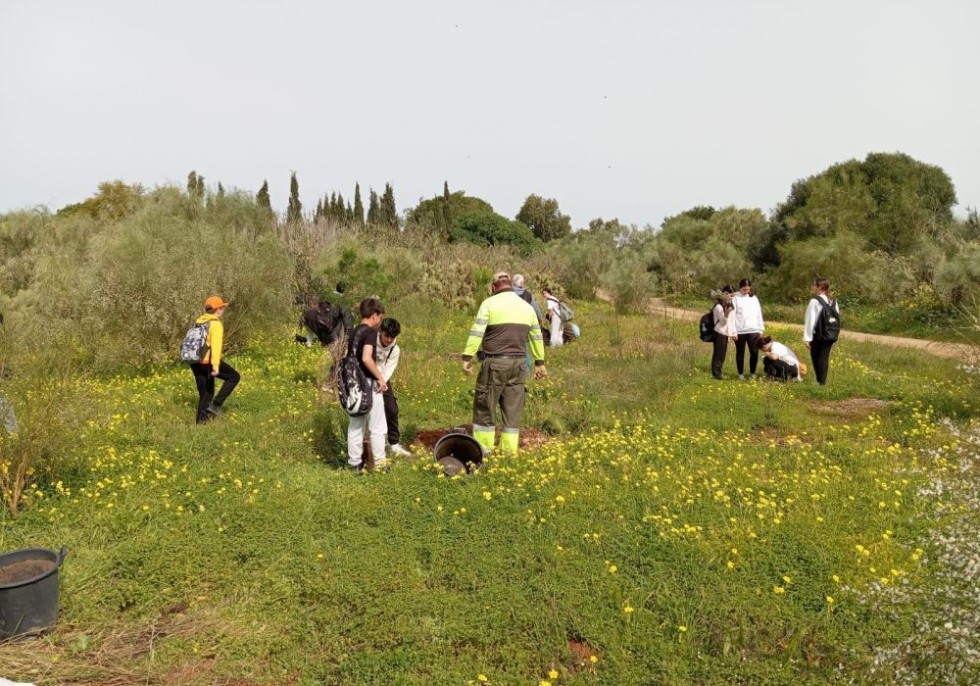 Estudiantes del Arroyo Hondo y Ayuntamiento de Rota participan en la repoblación de la vía verde