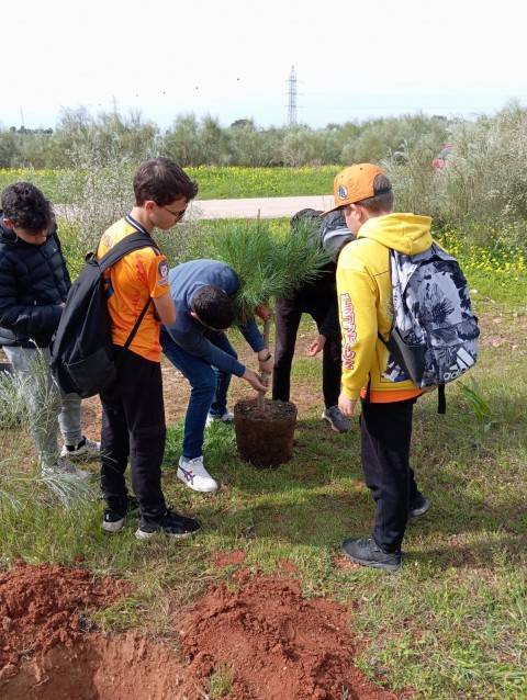 En total, los estudiantes plantaron ocho ejemplares arbóreos de pino y araar y varias unidades de romero y lentisco, todas ellas especies autóctonas.
