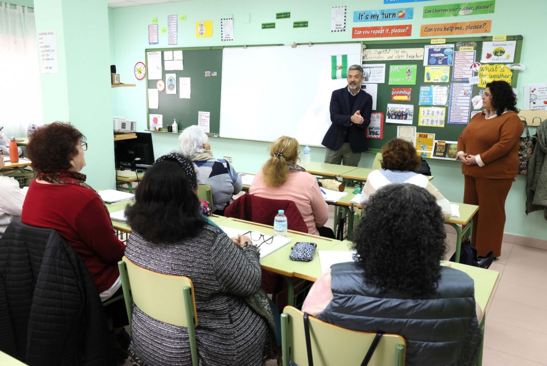 Atendiendo a la demanda de los colegios, el alcalde de Rota, Javier Ruiz, acompañado de la delegada de Educación, Laura Almisas, visitó el centro de adultos 'Baifora', para compartir con el alumnado esta celebración y trasladarles el importante hito que supuso la consecución de la autonomía de la comunidad, así como los avances que se han venido produciendo en la región desde entonces.