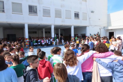 En los colegios de Rota se ha celebrado hoy el día de Andalucía por adelantado, ya que mañana es festivo, y lo han hecho como es habitual, cada uno con una programación propia en la que ha habido un poco de todo. Izado de banderas de Andalucía, interpretación de canciones populares, bailes flamencos, desayuno andaluz y hasta charlas en las que han participado los concejales del Ayuntamiento de Rota para poner de manifiesto la importancia de este día.