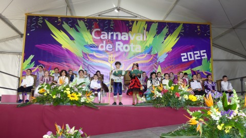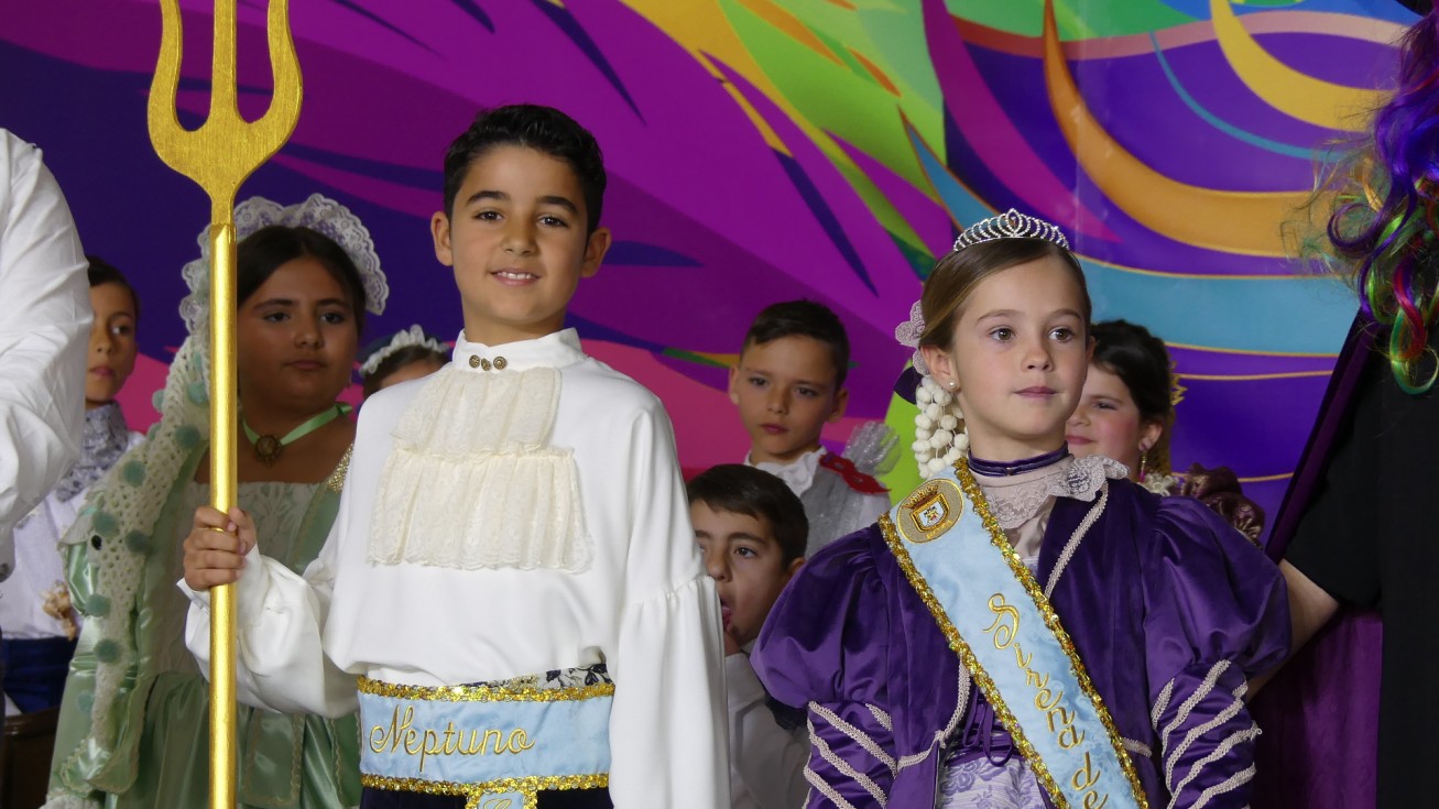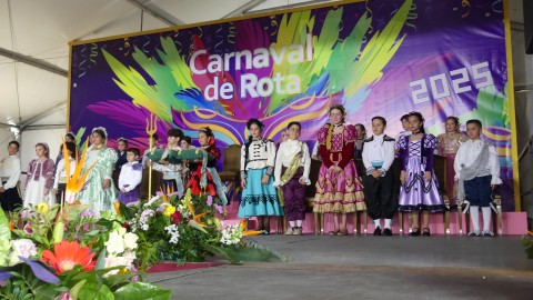 El domingo de Carnaval centrado en los niños ha tenido como parte del acto central del día, organizado por el Ayuntamiento de Rota, la presentación de las ninfas y atlantes que en esta fiesta representan a peñas, agrupaciones y entidades, así como la elección de entre todos ellos, de la Sirena y Neptuno infantil.
