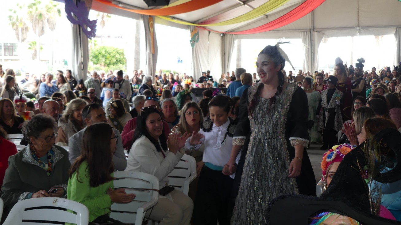 Tras un pasacalle que partió un poco antes de las doce del mediodía por miedo a que la lluvia sorprendiera a mitad de camino, y una vez en la carpa instalada en la avenida San Juan de Puerto Rico, muchos de los pequeños participantes y sus familias fueron tomando asiento para asistir a la elección en directo de los dos chicos que harán de representante del Carnaval infantil en este 2025.