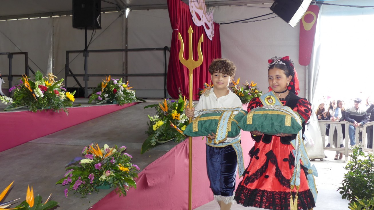 Cada una de las 11 ninfas y de los 10 atlantes de este año fueron subiendo al escenario del brazo de sus acompañantes cerrando la comitiva la Sirena y el Neptuno 2024, Rocío Herrera Bazuelo y Pablo Peña Bejarano. Tras la lectura del acta por parte de la secretaria de la delegación de Fiestas, se procedió por parte de la delegada de Fiestas, Esther García, acompañada del delegado Manuel Jesús Puyana, a proclamar a los dos elegidos. Una decisión tomada por los miembros del jurado que en estas semanas previas han podido mantener con los chicos varios encuentros para conocerlos mejor. Finalmente, se proclamaba a Guadalupe Fénix Gallardo como Sirena 2025 y a Javier Miño Rodríguez como Neptuno de esta edición. Los dos, sorprendidos, contentos y con los ánimos de fondo de sus respectivas familias y conocidos, pasaban a ser coronados como máximos representantes del Carnaval infantil.