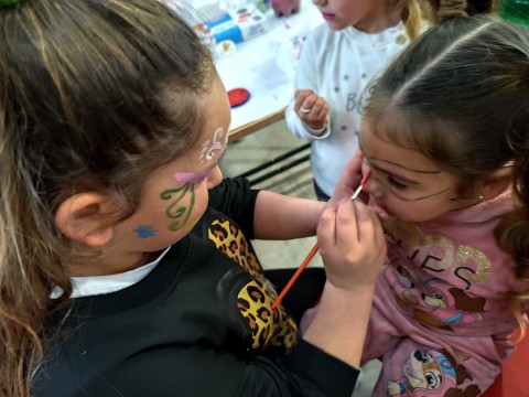El apoyo escolar que el programa 'La escuelita' ofrece a los menores de la comunidad gitana, se completa con numerosos talleres y actividades de ocio saludable y sensibilización. En estos días, en los que el Carnaval está muy presente, la iniciativa propuesta tenía que ver con un taller de maquillaje de fantasía que se ha desarrollado en colaboración con el II Plan Municipal contra las Drogas y Adicciones de la delegación municipal de Servicios Sociales.