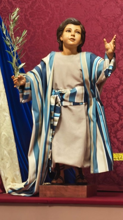 La imagen, que representa a un niño hebreo con una rama de olivo en su mano derecha, ha sido tallada en madera de cedro, de unos 90 centímetros de altura y policromada al óleo para vestir, pasando a formar parte del misterio procesional de la Entrada Triunfal en Jerusalén para la Semana Santa de esta localidad.