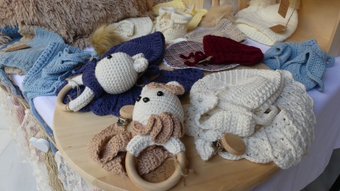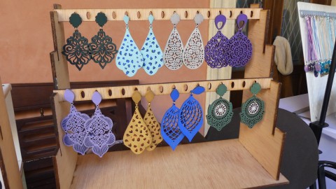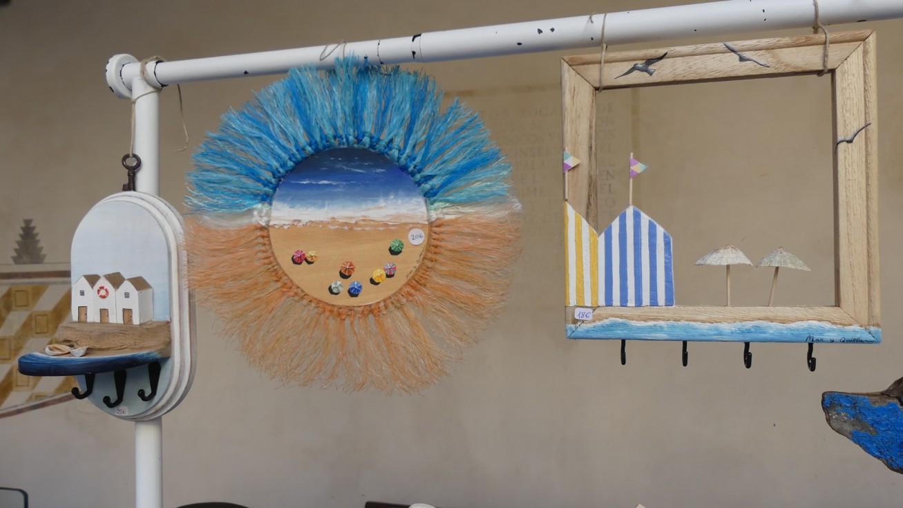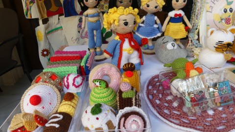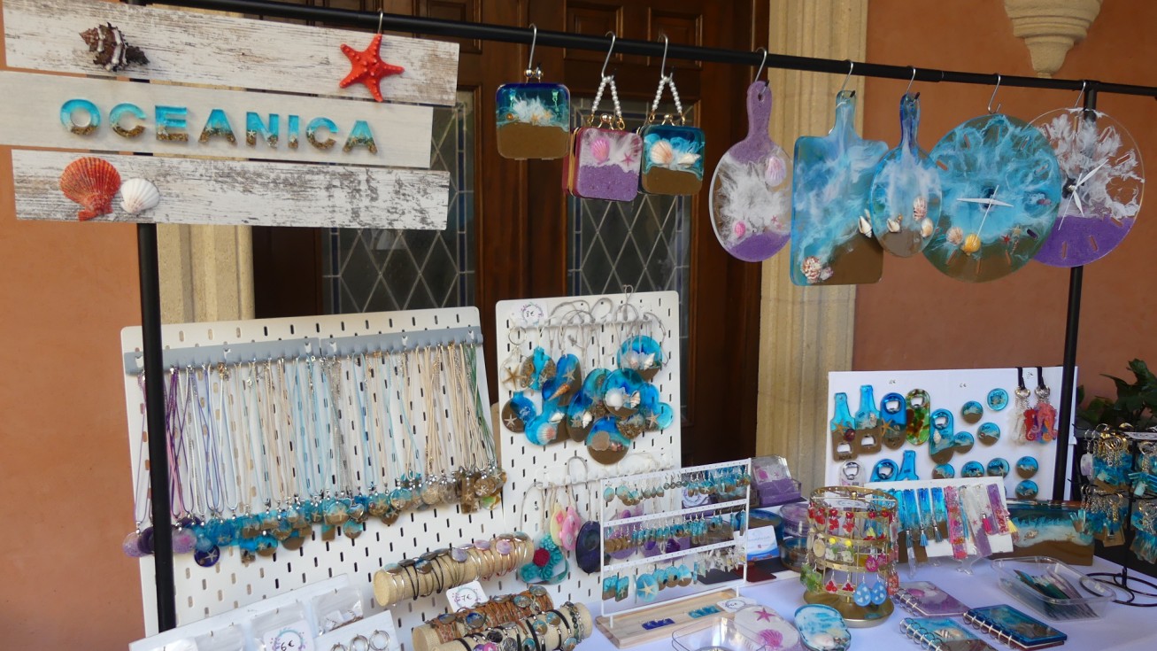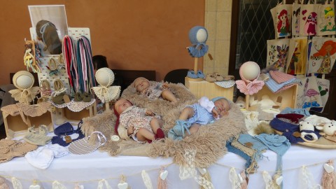 Entre artículos artesanos de todo tipo, como cochet, macramé, ropas de bebé, decoración realizada con materiales reciclados con temática náutica o piedras decorativas, trabajos en cristal, bisutería, bebés reborn, muñecos de tela, mantoncillos, etc., el patio del Castillo de Luna sirve de escenario para una Muestra de Artesanas Roteñas que aunque es habitual en los días del Festival de la Pizza, este año se ha decidido que tuvieran su espacio propio.