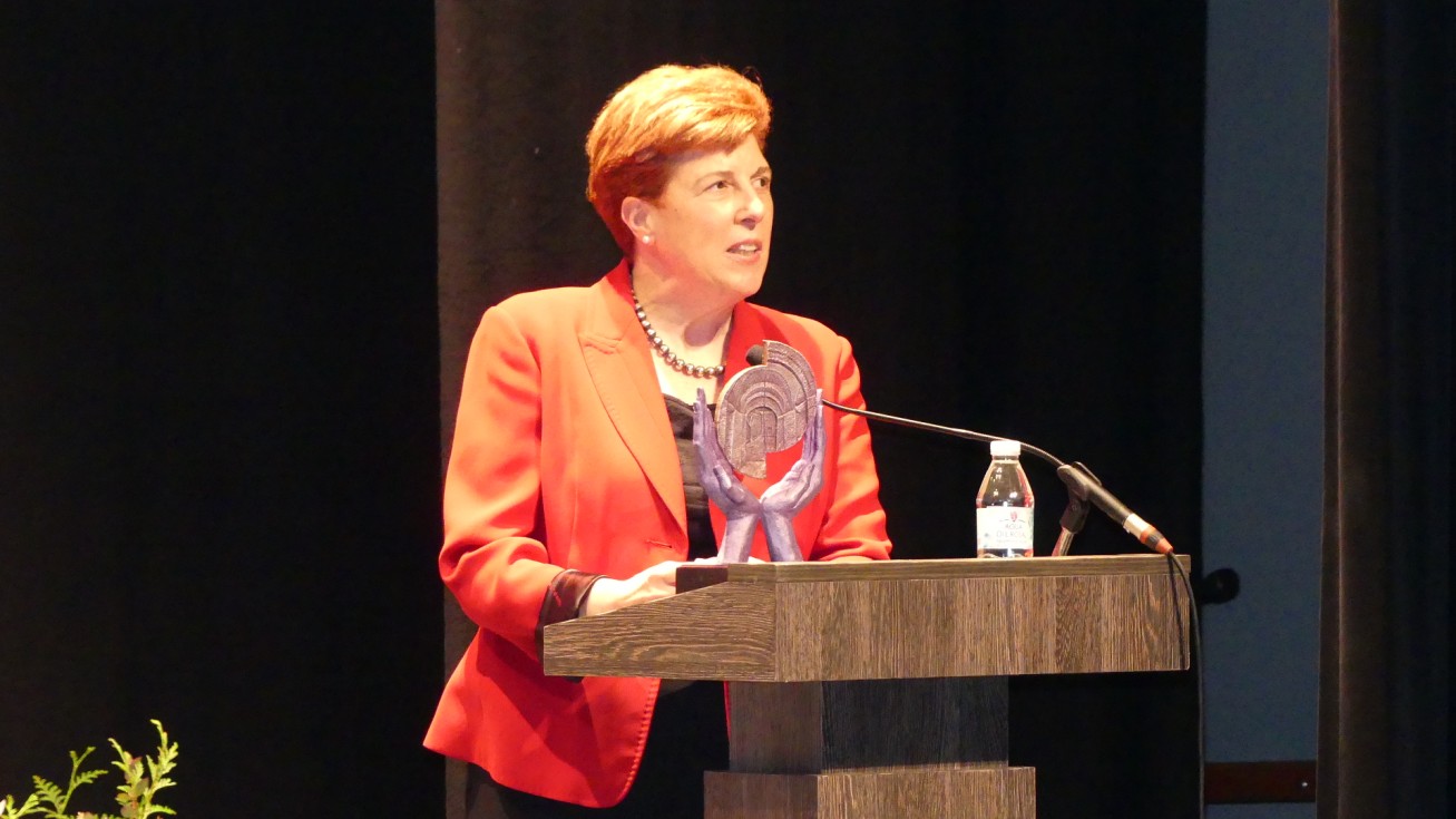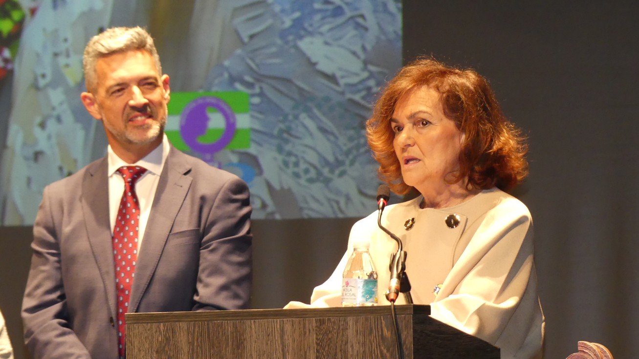 Tras los homenajes a personas o entidades locales, que centraron la primera parte del acto, se pasó a las personas conocidas en el ámbito nacional, comenzando por Nieves Sánchez Guitián. Esta mujer ha colaborado en la junta de gobierno del Colegio Profesional de Geólogos de España, creó en 2015 la Asociación Profesional de Técnicos en Seguridad Nuclear y Protección Radiológica de la que es presidenta y ha sido directora de la Escuela Nacional de Protección Civil del Ministerio del Interior. Su currículo la ha llevado a ser una mujer relevante y además, comprometida con un feminismo que hoy reconocía que defiende desde pequeña. Su aportación en esta gala era un mensaje claro, que la mujer ocupe más espacios en los terrenos de la ciencia y tecnología porque solo así, manifestaba, se seguirá avanzando. Destacando estos dos terrenos como imprescindibles para la presencia femenina, pedía mayor implicación de los colegios, que se revisen los proyectos educativos y que haya más museos ligados a la ciencia para que las niñas tengan claros los referentes porque es un gran reto, añadía, que se aumente la cultura científica. En su intervención, agradecía además el trabajo de la asociación feminista de Rota y que el premio que hoy le daban llevara el nombre de su admirada Carmen Calvo.