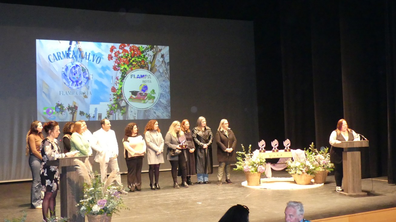 Si hay una entidad representada eminentemente por mujeres, esas son las asociaciones de padres y madres de alumnos, las AMPAS, que se coordinan en la Federación Local de Asociación de Padres y Madres de Alumnos (FLAMPA) que hoy era otra de las elegidas en esta IV Gala Premios 8M 'Carmen Calvo'. Su presidenta, Charo Martín-Arroyo, ha subido al escenario con las representantes de todas las AMPAS de los colegios de Rota, donde se ha podido ver que, a excepción de Juan Antonio Blanco, todas eran mujeres. Esta visibilidad sin embargo, no tiene una imagen positiva porque como han explicado ambos a través de un cómico diálogo, muchos creen que las personas que se dedican a estas asociaciones simplemente, es porque tienen mucho tiempo libre. Lo que hoy reivindicaban gracias a este homenaje, es el papel tan importante que juegan en los centros educativos donde denuncian la falta de recursos, organizan actividades lúdicas que los colegios e institutos no pueden por falta de tiempo, y piden ante las administraciones las mejoras que son necesarias para una escuela igualitaria para todos. Son personas comprometidas que prestan su tiempo de forma altruista y que son una pieza clave en la comunidad educativa. En Rota, se puede presumir del trabajo de la FLAMPA, y su presidenta reconocía además el que hacen los padres y madres que están comprometidos con la igualdad, la coeducación y el derecho a la diversidad.