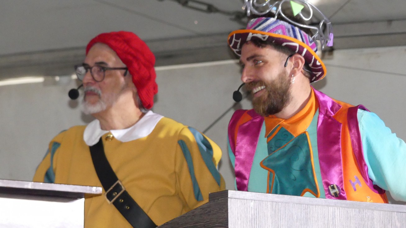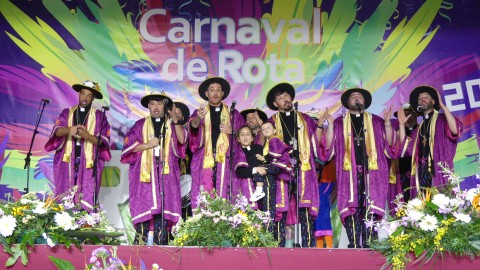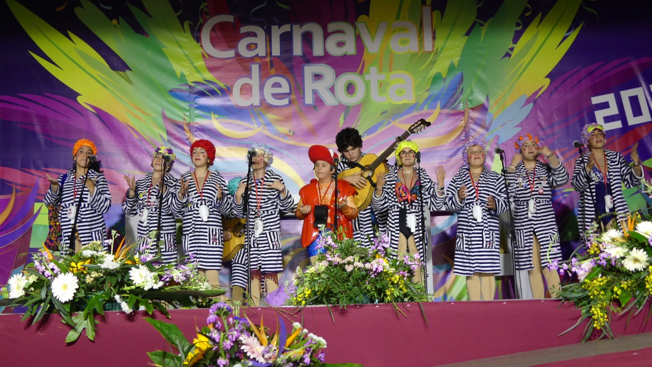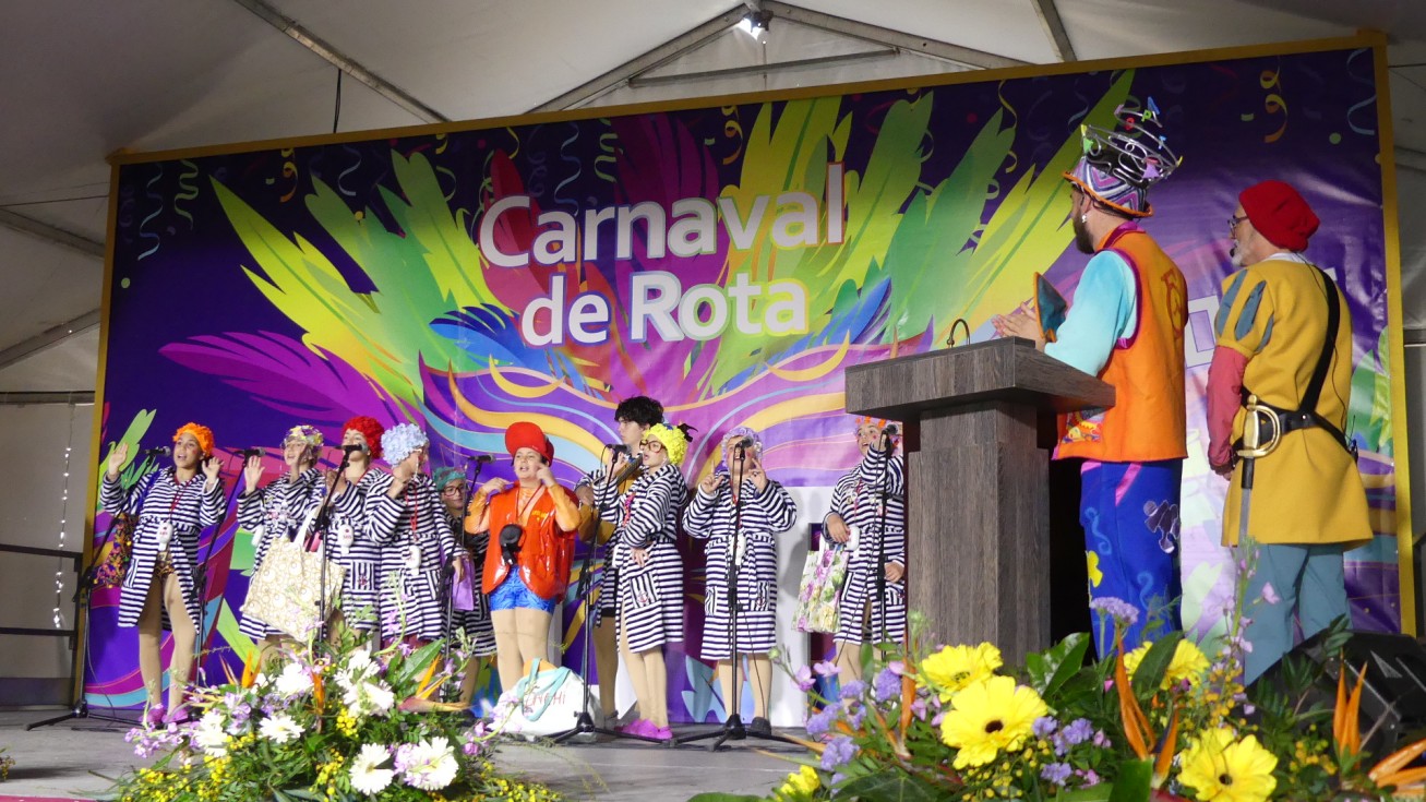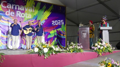 Los hermanos Villegas dejaron el protagonismo como pregoneros a las agrupaciones de la localidad y a algún otro carnavalero amigo invitado, porque la música de estas fue el sentido de su puesta en escena. Entre movimiento de atril a un lado y al centro para dejar el escenario libre cuando subían a cantar las chirigotas y comparsas hubo alguna que otra guasa, porque tras diez actuaciones, verlos acarrear reiteradas veces el armatoste de madera, fue cuanto menos peculiar. Entre medias, alusiones a las mujeres carnavaleras roteñas, a su abuelo Enrique Villegas que hace 33 años fue pregonero de los carnavales de la localidad, a amigos unidos por esta afición y a quienes aportan a la fiesta de Don Carnal su granito de arena para que nunca decaiga.