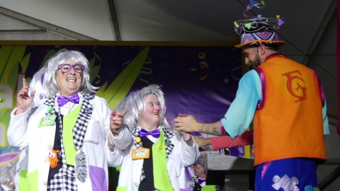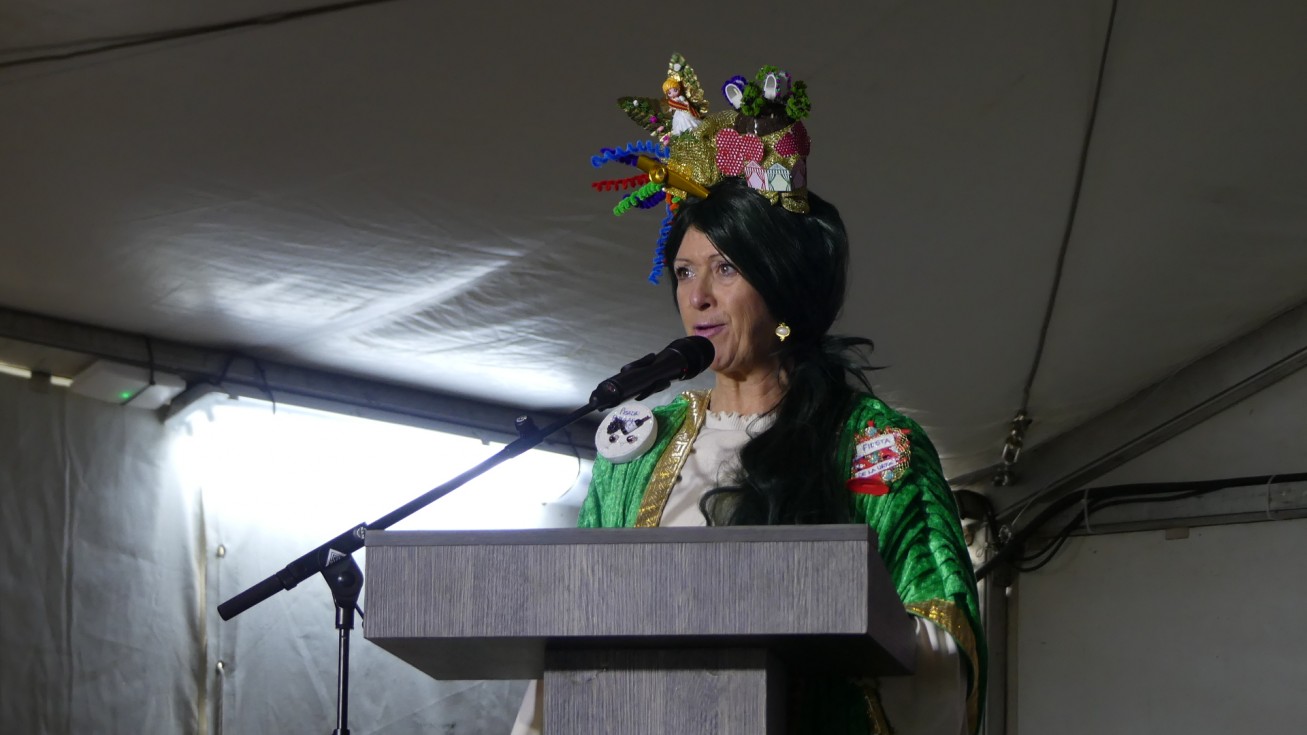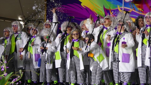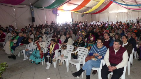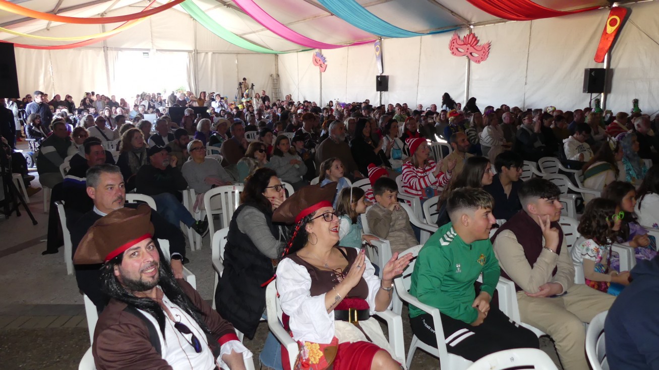 Tras el pregón, y con una carpa llena a las 5 de la tarde, la chirigota de los pregoneros, 'Cai, los que te van a cantar...te lasudan (los disléxicos)', tomaron el relevo para que la tarde en este recinto mantuviera el ambiente de Carnaval, ofreciendo su repertorio de este año con el que han concursado en el COAC del Teatro Falla.