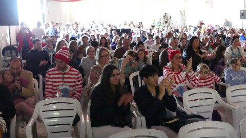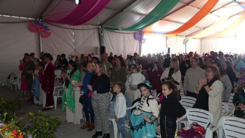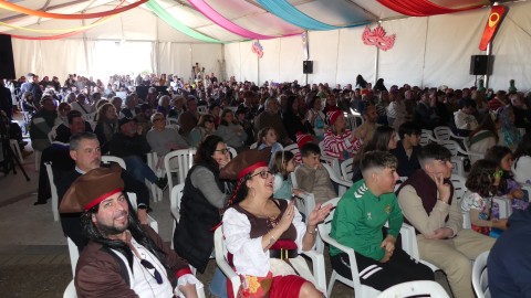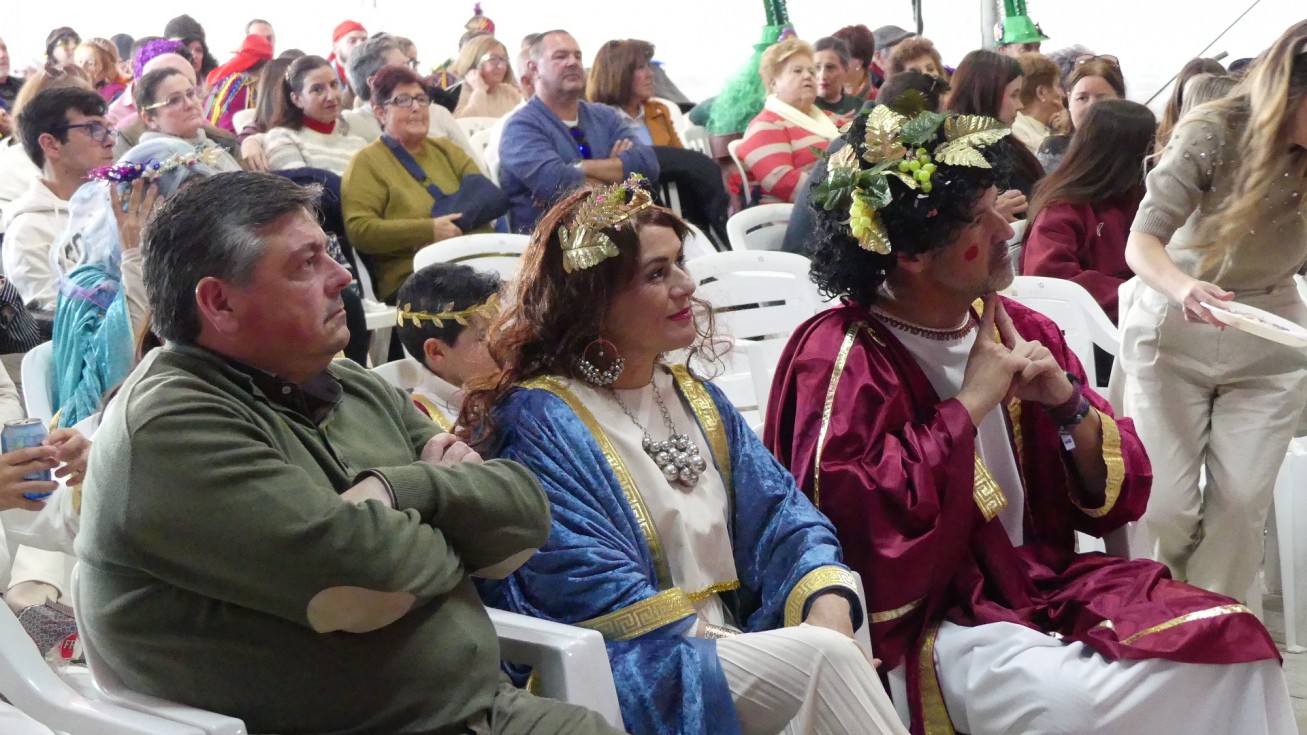 Pese a la hora de inicio, algo inusual al coincidir con el almuerzo, ya que eran las 14.45 horas cuando arrancó, la carpa acabó mostrando un aforo bastante completo a medida que se fue pasando la hora de la comida. Los que estuvieron pudieron escuchar mucho pasodoble, cuplés y estribillos porque en eso, básicamente, basaron Enrique Villegas y sus hijos Juan Miguel y Alejandro, el pregón de Rota.