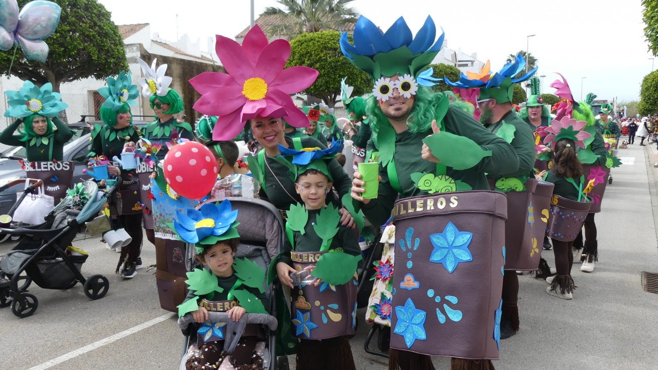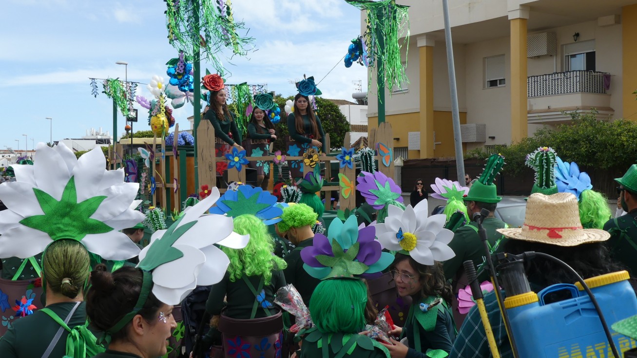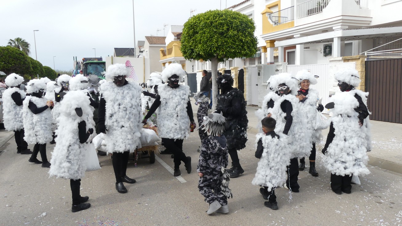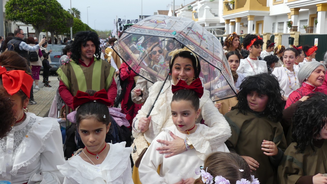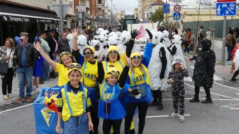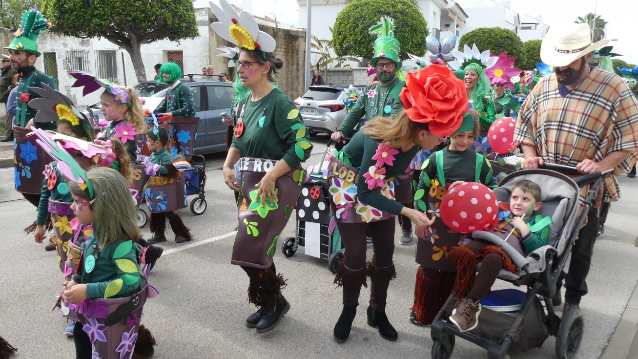 Cientos de roteños han participado en este colorido cortejo en el que la columna vertebral siguen siendo las AMPAS que animan e implican a muchas familias para que se disfracen y formen parte de esta cita. Los colegios de Rota más algunas asociaciones como la de personas con discapacidad o el grupo de 'La escuelita', familias y grupos de amigos que por su cuenta también han ideado un original tipo para participar en la cabalgata, e incluso de forma indivual, han sido los protagonistas de una tarde en la que aunque han caído algunas gotas intermitentes poco preocupantes al principio, al final, sobre las cinco y media, apretaban y hacía que el ritmo de las bateas se acelerara para que la cabalgata llegara antes de tiempo a la carpa de la avenida de San Juan de Puerto Rico, donde de disolvía. Pese a ese contratiempo en el tramo final, ya que la cabecera del cortejo se encontraba en calle Calvario cuando empezaron a caer algunas gotas más continuas, los niños y mayores se han podido quitar la espinita de estar en la calle compartiendo un momento de diversión, convivencia y de paso, lucir los tipos que se han trabajado como siempre. Algunos, dignos de elogio.