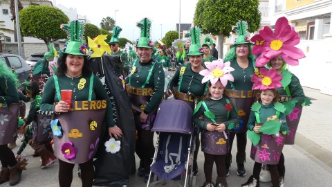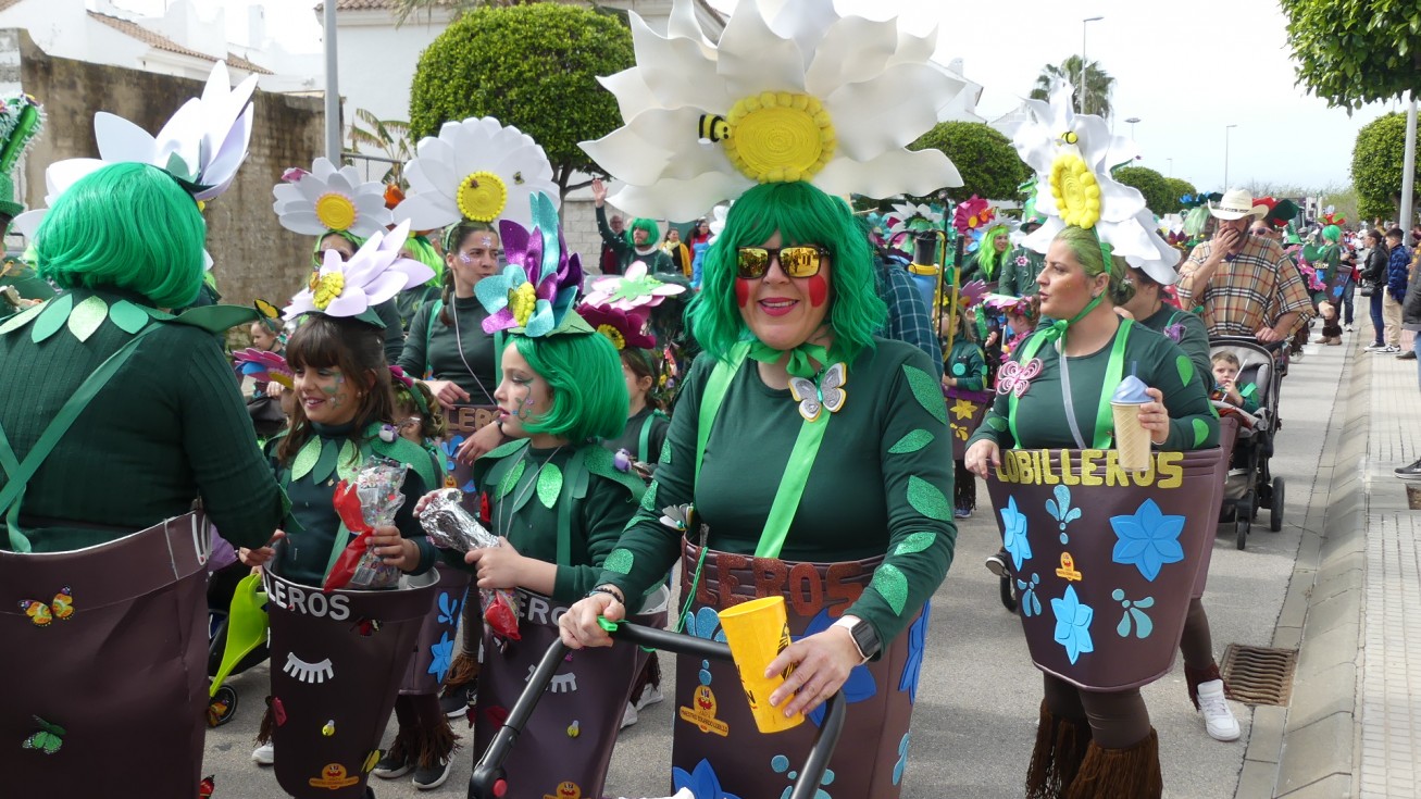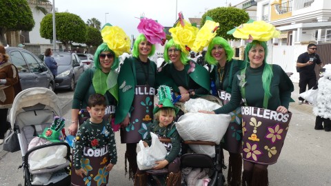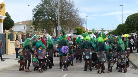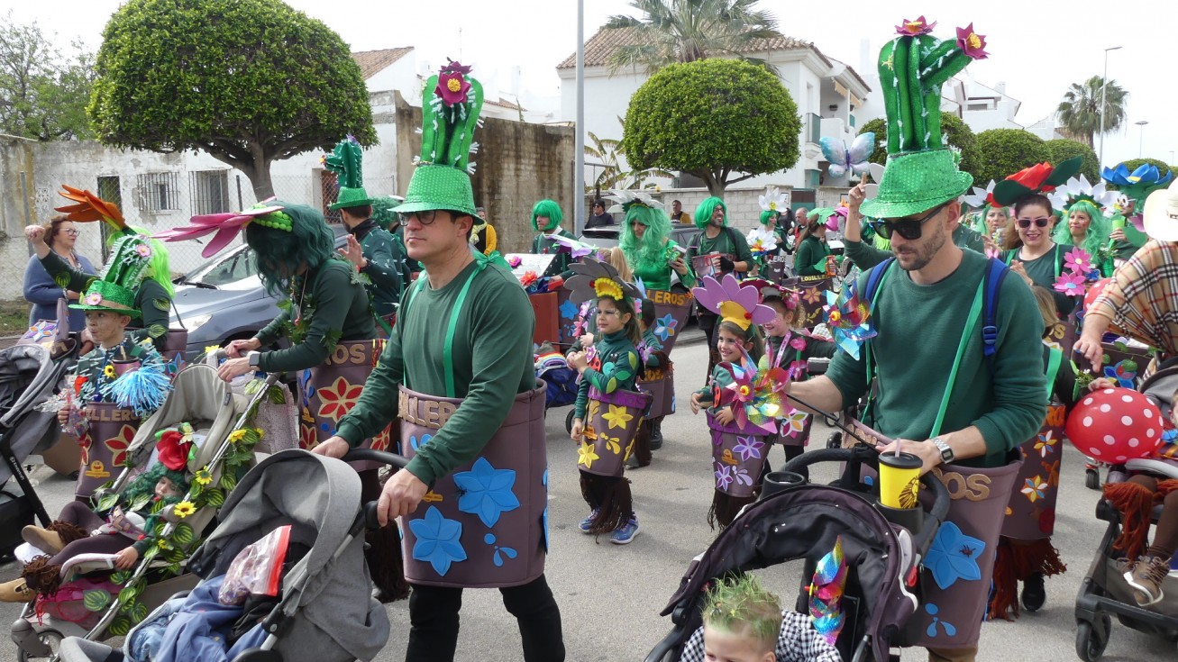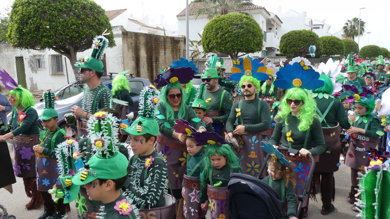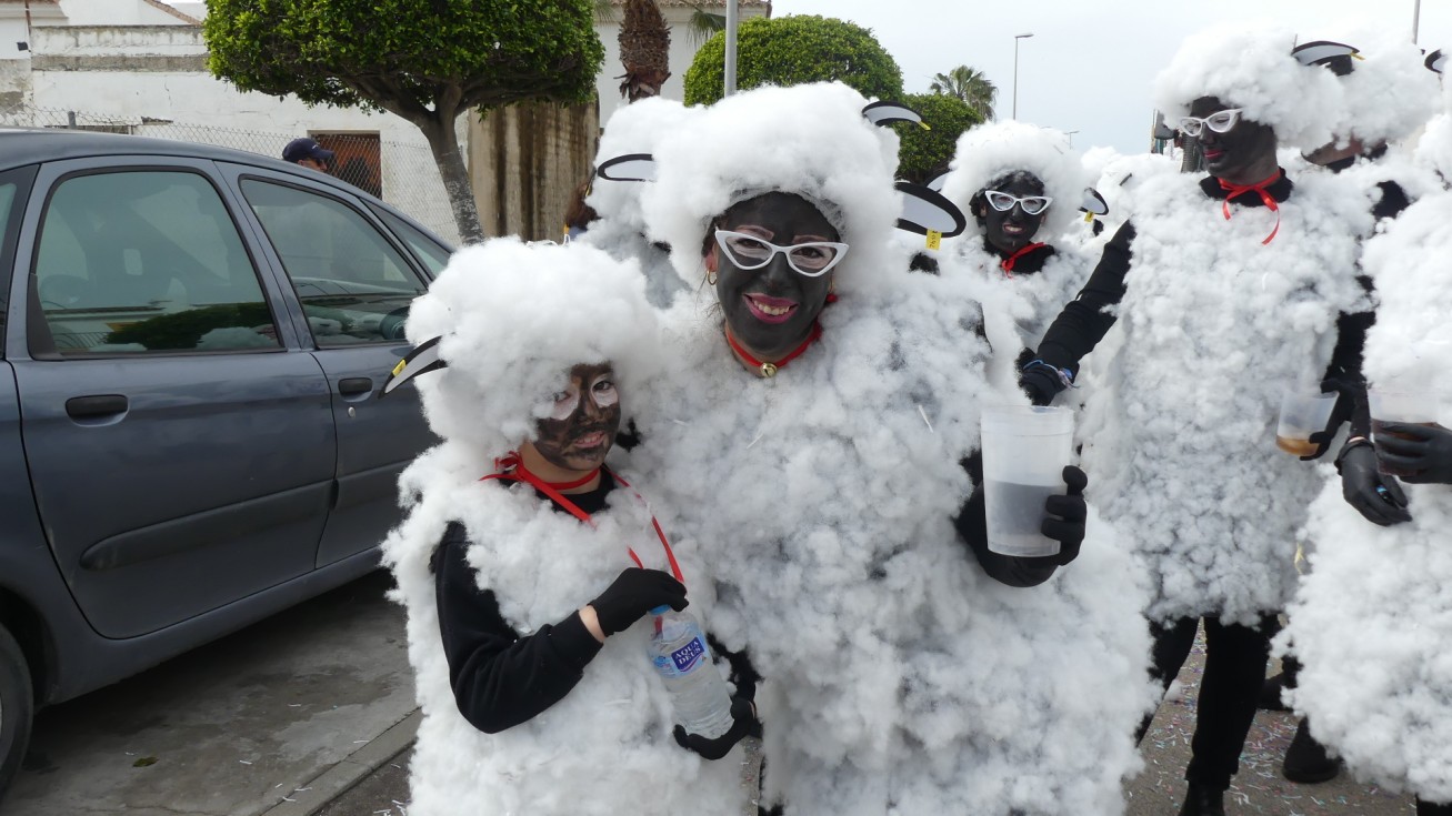 Cientos de roteños han participado en este colorido cortejo en el que la columna vertebral siguen siendo las AMPAS que animan e implican a muchas familias para que se disfracen y formen parte de esta cita. Los colegios de Rota más algunas asociaciones como la de personas con discapacidad o el grupo de 'La escuelita', familias y grupos de amigos que por su cuenta también han ideado un original tipo para participar en la cabalgata, e incluso de forma indivual, han sido los protagonistas de una tarde en la que aunque han caído algunas gotas intermitentes poco preocupantes al principio, al final, sobre las cinco y media, apretaban y hacía que el ritmo de las bateas se acelerara para que la cabalgata llegara antes de tiempo a la carpa de la avenida de San Juan de Puerto Rico, donde de disolvía. Pese a ese contratiempo en el tramo final, ya que la cabecera del cortejo se encontraba en calle Calvario cuando empezaron a caer algunas gotas más continuas, los niños y mayores se han podido quitar la espinita de estar en la calle compartiendo un momento de diversión, convivencia y de paso, lucir los tipos que se han trabajado como siempre. Algunos, dignos de elogio.