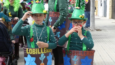 Los payasos, la familia Madrigal, piezas de ajedrez, las macetas y plantas, ovejas, coches de choque, brujas, personajes de la película 'Encanto', aviadores, mendigos, vikingos, elfos y muchos más disfraces se han podido ver en un desfile animado, con mucho papelillo por el aire dejando un rastro de alegría que era importante para despedir este Carnaval con buen sabor de boca pese a que, al final, la lluvia apresuró el fin.