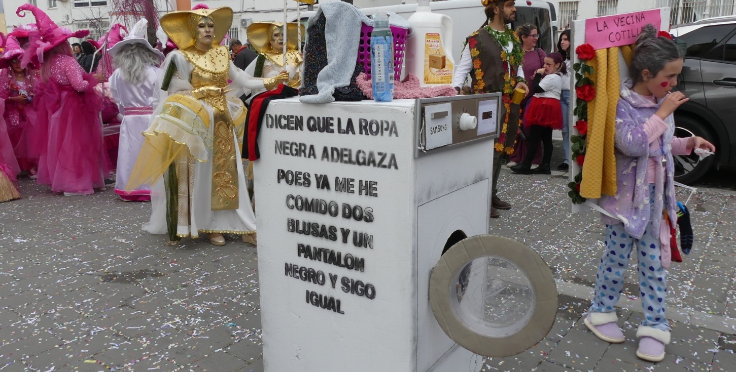 A lo largo de todo el cortejo hubo disfraces de todo tipo, unos muy pensados, otros ingeniosos, algunos muy trabajados y eso ayudó a una cabalgata colorida en la que las AMPAS jugaron un papel clave como cada año, reuniendo a familias enteras disfrazadas dentro de la comunidad educativa.
