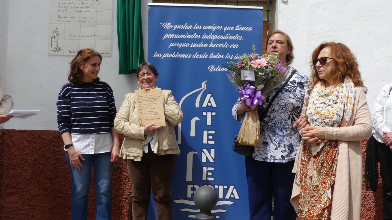 Para terminar el acto, la delegada municipal Esther García, mostraba su agradecimiento al Ateneo de Rota por mantener una Senda de la Poesía con la que el Ayuntamiento seguirá colaborando, convencida de que es una buena iniciativa acercar las letras a pie de calle, en especial los poemas, y además, como era el caso de hoy, visibilizar el papel de la mujer pidiendo que fueran muchas más firmas femeninas las representadas en este sendero cultural que ya cuenta con versos de Rafael Alberti, Almudena Grandes, Luis García Montero, Benjamín Prado, Juan José Téllez, Mariló Naval, Joaquín Sabina, Javier Ruibal, Ángel García López o Felipe Benítez Reyes.