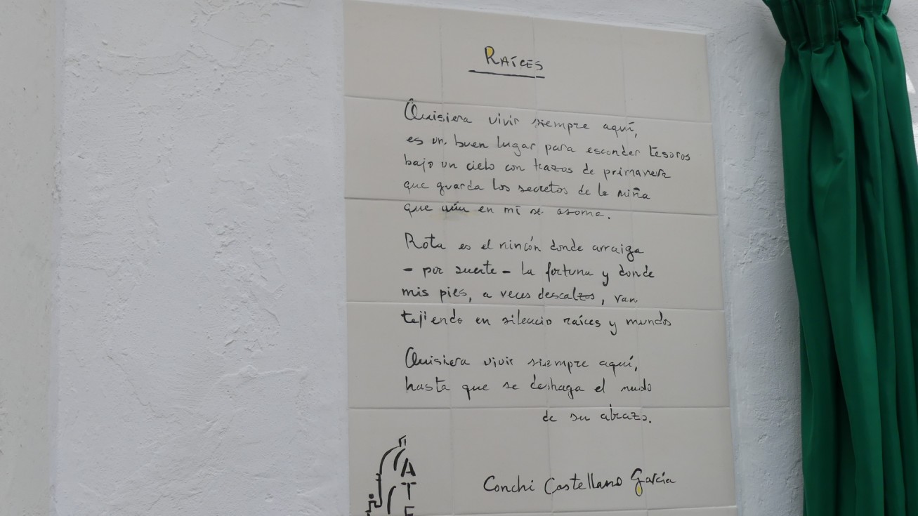 En la calle Constitución número 8, aquellos que disfruten paseando por el casco histórico de Rota y además, les guste la poesía, tendrán una nueva parada desde este sábado porque en ese rincón, hay un nuevo poema que se suma a la Senda de la Poesía. Esta vez, el Ateneo de Rota, que impulsó hace años esta iniciativa con la colaboración del Ayuntamiento de Rota para que las letras estén siempre presentes a pie de calle, ha elegido unos versos de Conchi Castellano García, una mujer que vive entre libros, creación literaria y sobre todo, entre poemas, en los que encuentra una forma de expresarse desde su yo más interior.
