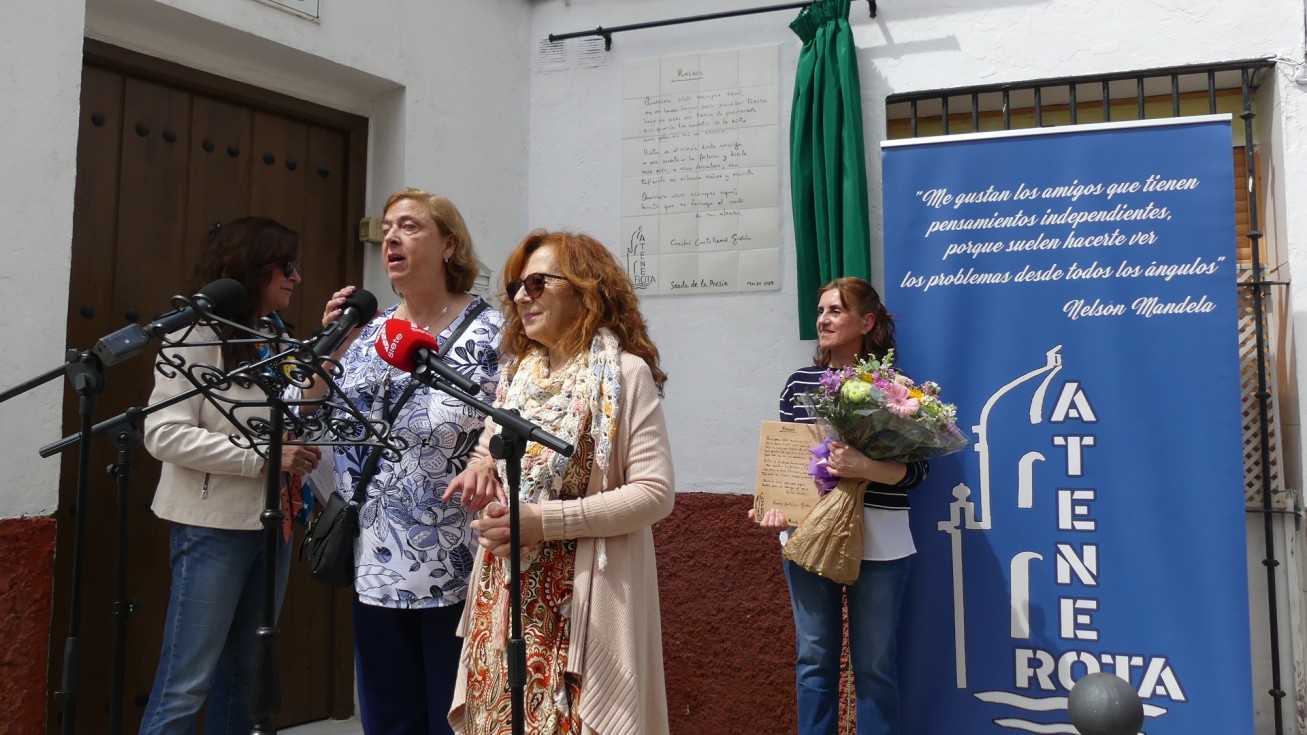 El azulejo, que luce en la calle Constitución un poco antes de llegar a la plaza Barroso, donde hoy se congregaban muchos amigos de esta escritora, fue descubierto por la propia autora y la miembro de la junta directiva del Ateneo de Rota, Auxiliadora Fernández, que se encargó de presentar el acto que sobre la una del mediodía se celebraba para poner de manifiesto no solo el amor por las letras de esta mujer, cofundadora de la revista literaria 'Página en blanco' y presente siempre en los números de la desaparecida 'Voladas', sino su talante creativo y especialmente, su compromiso con la cultura y predisposición a ayudar a quien se lo pide.
