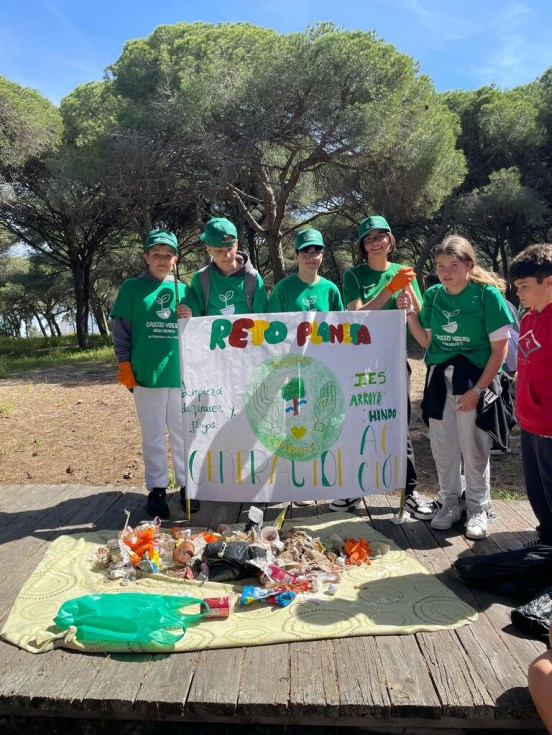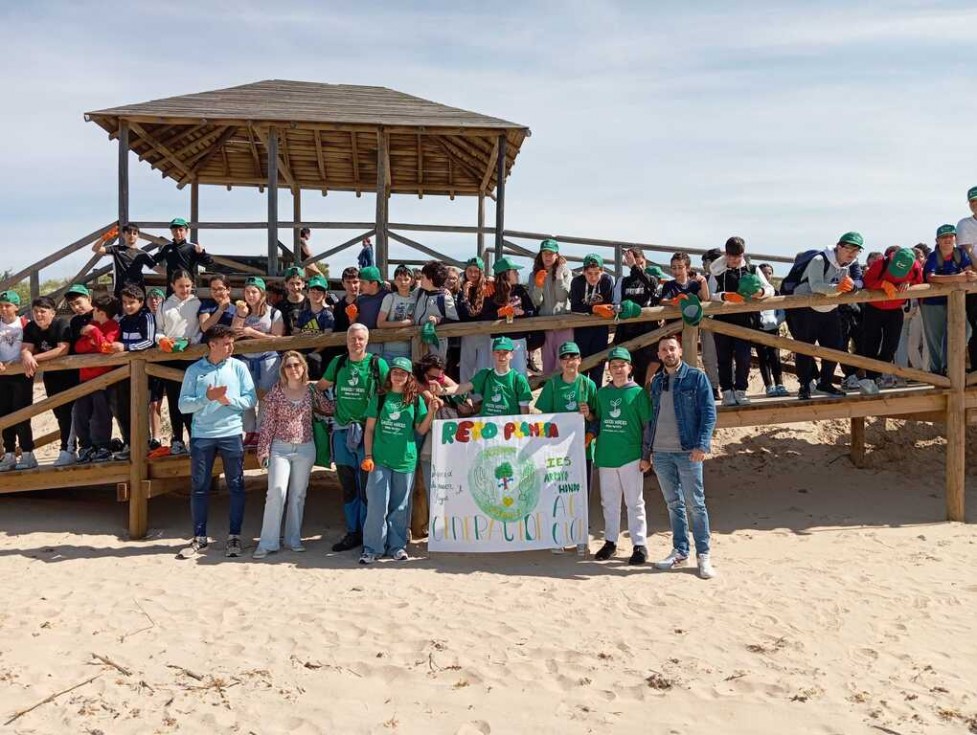 Desde este instituto se han planteado cinco acciones de cuidado del medio ambiente, empatía, solidaridad o ejercicio físico y hoy tocaba desarrollar la primera de ellas, el 'Reto planeta', que ha consistido en una retirada de basura de entornos naturales como la playa o los pinares.