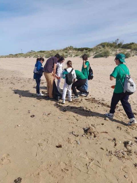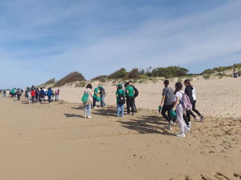 Personal de la delegación municipal de Medio Ambiente ha acompañado a los estudiantes y profesores en el desarrollo de este reto que se centraba en la limpieza de residuos en los ambientes naturales más cercanos al centro escolar, realizando un recorrido por la orilla de la playa y los pinares, evitando en todo momento la arena seca y el cordón dunar.