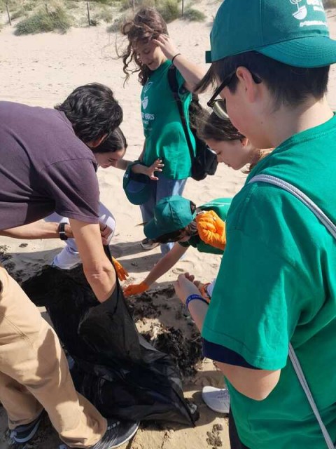 Tras recorrer unos 500 metros de playa haciendo una recogida selectiva para dejar en mejor estado la línea litoral, los alumnos participantes se han ido a los pinares de donde también han extraído entre 5 y 6 kilos de plásticos.