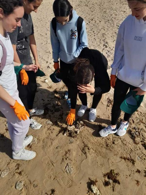 Alumnos del IES Arroyo Hondo cumplen su 'Reto planeta' sorprendidos por la cantidad de toallitas vertidas en la playa