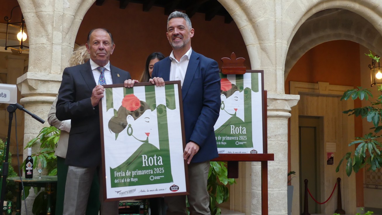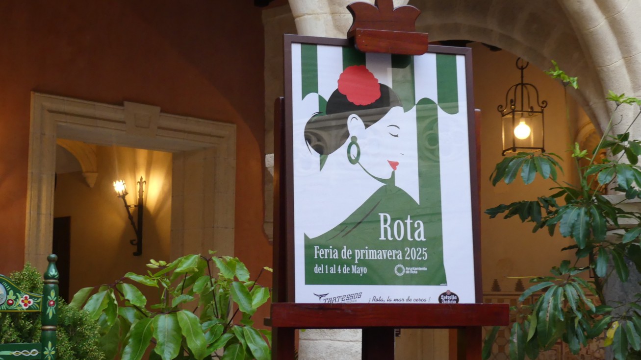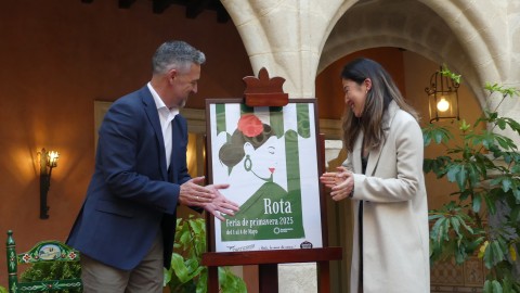 Para anunciar la llegada de este evento, uno de los que se fijan en rojo en el calendario festivo local, se ha elegido un cartel, obra de Laura Kong Delgado, que ha sido seleccionado como el mejor de todos los presentados al concurso convocado por el Ayuntamiento de Rota. La autora, que se ha encargado de descubrirlo junto al alcalde de Rota, Javier Ruiz, describía la imagen con la que ha querido representar la Feria de Primavera. Un cartel minimalista, en el que predomina el color verde, asociados a la bandera de Rota y la bandera de Andalucía, con un toque de color rojo para destacarlo. La imagen es la de una mujer de flamenca en primer plano con un fondo que recuerda a las lonetas de rayas verdes y blancas típicas de las casetas portátiles. Laura Kong indicaba que quiso hacer un cartel elegante, sin muchos elementos, dando realce a lo más tradicional y con ello, manteniendo la esencia de esta fiesta. Agradecida porque su obra haya sido la elegida, deseó una buena feria a todos los presentes como también hizo Manuel Sánchez Mendoza, patrocinador del cartel a través de la empresa Distribuciones Tartessos, que hoy invitaba a una copa de convivencia para calentar motores.