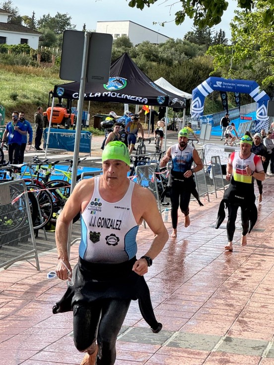 La de Arcos es la primera prueba puntuable para Circuito Gaditano de Triatlón 2025 y hasta la localidad gaditana se desplazaron 13 deportistas del Club Triatletas Roteños: Mercedes Ruiz-Henestrosa, Ángeles Gómez, Paco Pizorno, Antonio Orduña, José Luis Pérez, José Antonio Pino, José Manuel Laynez, Juan José González, Pablo Medina, Raúl Reyes, Sergio Domínguez y Carlos Ruiz. Todos ellos volvieron con satisfacción por los resultados obtenidos, ya que cabe destacar que cuatro triatletas consiguieron subirse al podio en sus diferentes categorías. Fue el caso, en categoría femenina, de Ángeles Gómez, que en su primer triatlón consiguió un meritorio tercer puesto en V2F, la incombustible Mercedes Ruiz-Henestrosa consiguió el tercer puesto en V1F; y en categoría masculina, el presidente del club roteño, Juan José González, se proclamó campeón de V3M, mientras que Carlos Ruiz ocupó el segundo puesto en V2M.