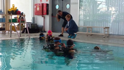 La delegada municipal de Deportes, Luisa Fernández, ha visitado una de las sesiones de esta actividad que ha acercado a los estudiantes nociones básicas del buceo y del equipo que se emplea en esta práctica, para posteriormente y con la ayuda e indicaciones de los monitores, tirarse al agua en la piscina municipal para practicar este deporte.