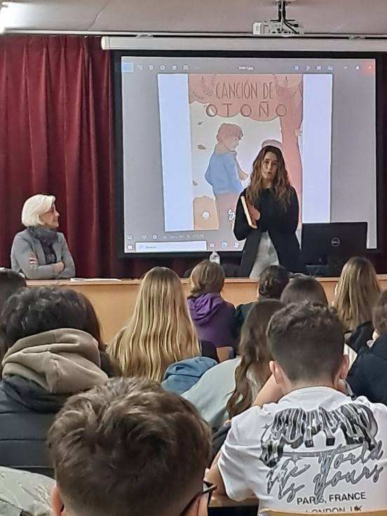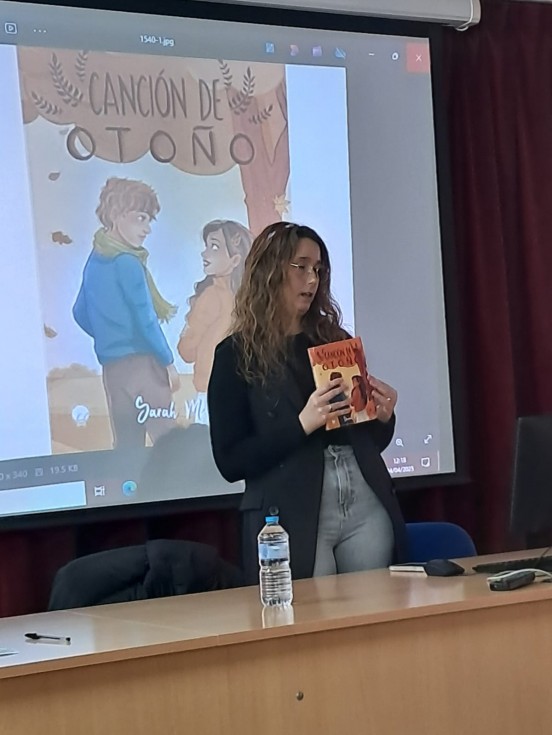 El tercero de los encuentros literarios en estas jornadas, tuvo como protagonista el pasado viernes a los alumnos de 4º de ESO que pudieron verse con la autora gaditana Sara Mey, quien intercambió con ellos impresiones sobre su obra 'Canción de otoño'. El acercamiento se convirtió en un fluir de preguntas por parte del alumnado a la joven escritora que, gustosamente, fue contestando desentrañando, de esta forma, todas las curiosidades e inquietudes que la historia de su libro había provocado en los estudiantes que la habían leído.